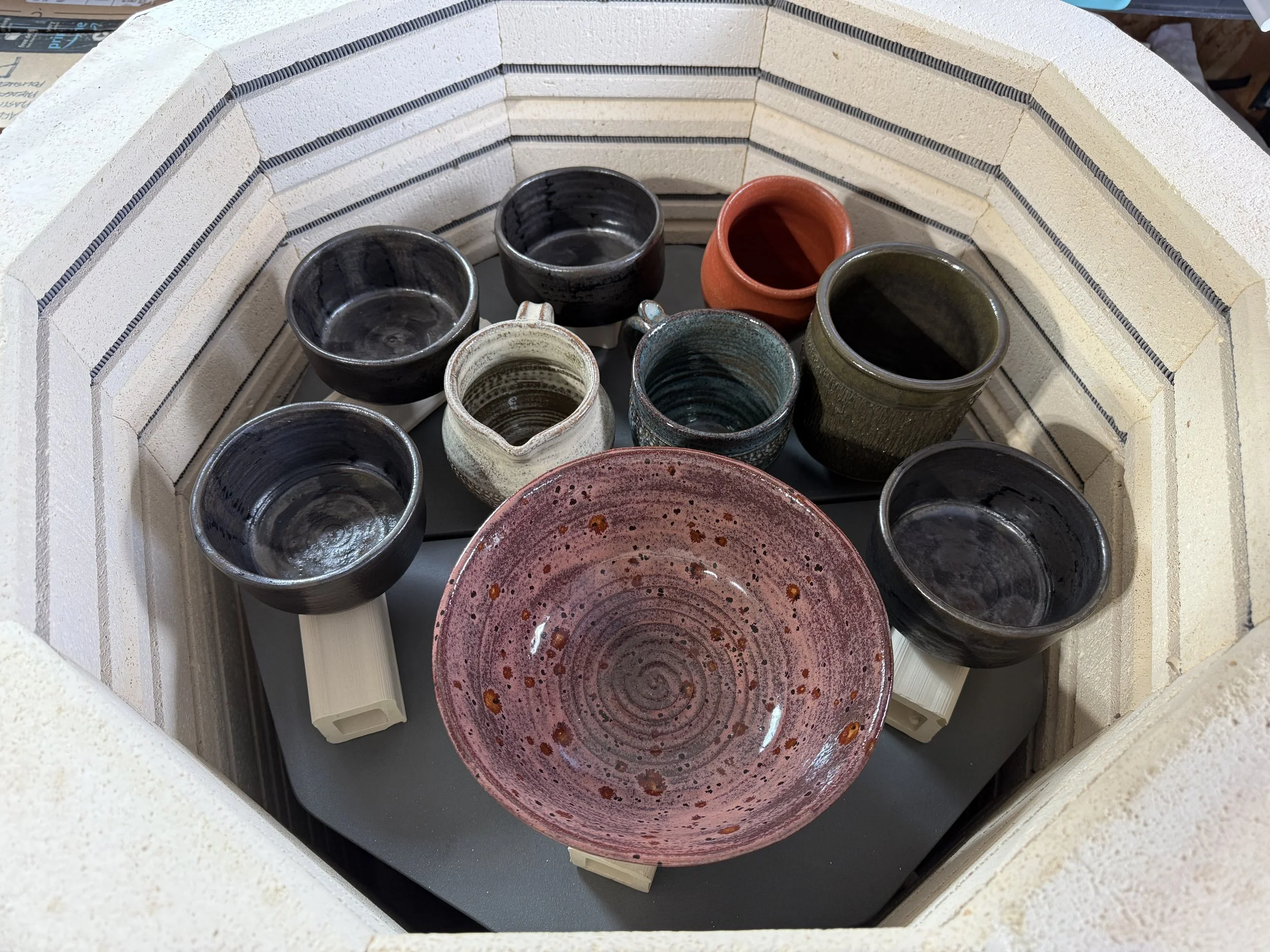Functional Stoneware bisque fired, glazed and after firing. Packed up for the Sip N Shop.